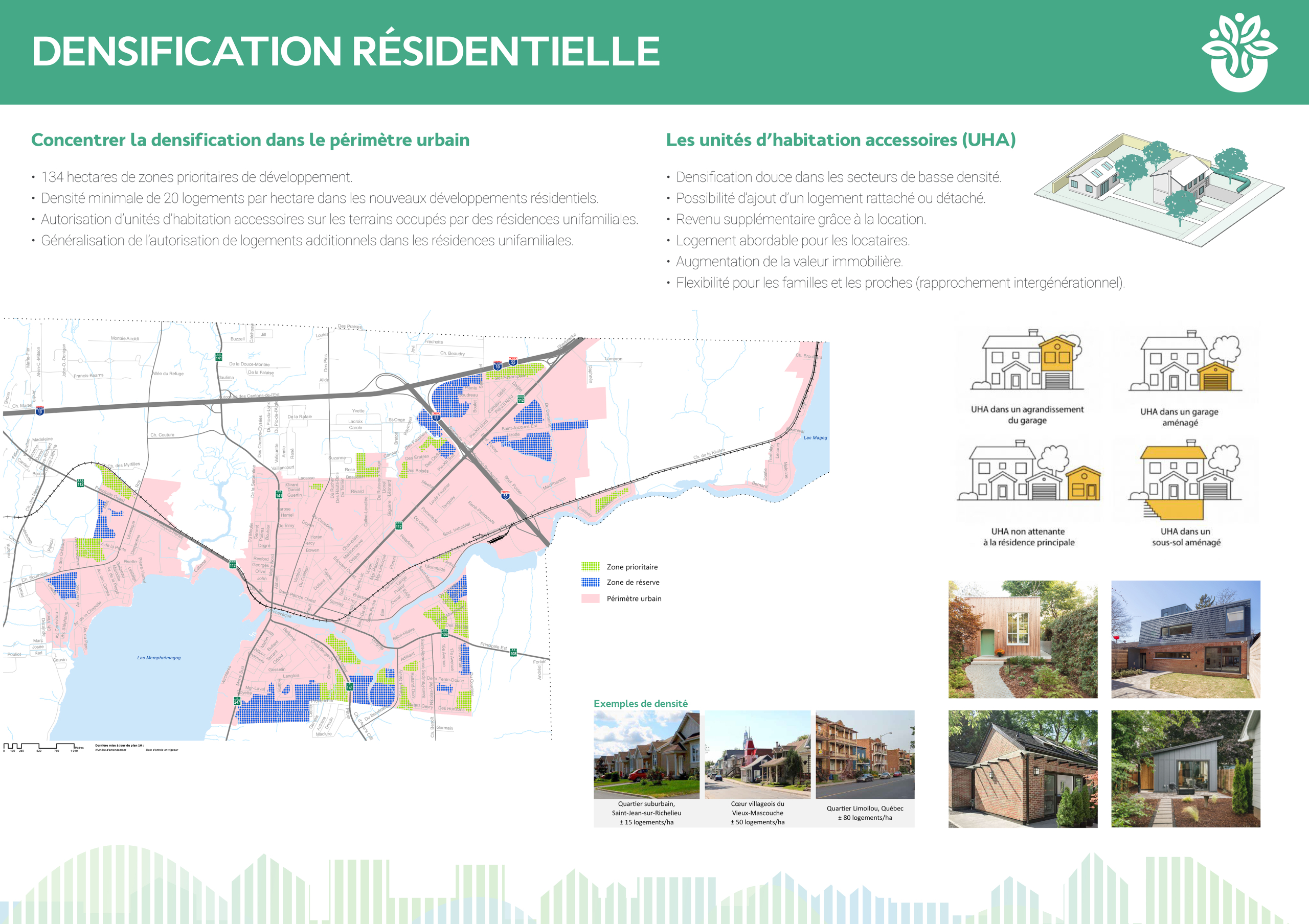 - Favoriser la densification et diversifier l’offre résidentielle;