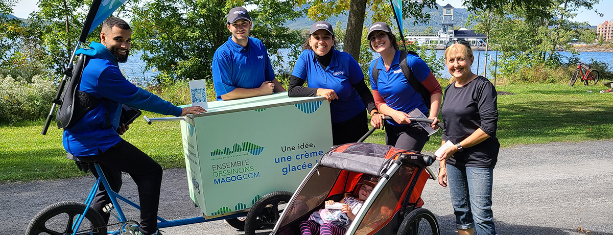 Magog, le 12 septembre 2022 – Dans le cadre de la révision de son plan d’urbanisme, la Ville de Magog ira à la rencontre des Magogoises et des Magogois! Les 17, 18, 24 et 25 septembre de même que les 1er et 2 octobre, un vélo gourmand se déplacera dans les endroits publics pour connaître les idées des citoyens sur le développement de leur milieu de vie. Les personnes rencontrées devront répondre à un court sondage électronique directement sur place. En échange de leurs idées, les participants repartiront avec une crème glacée.
